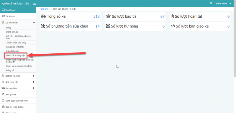 - Bước 2: Chọn Danh sách công việc theo cấp độ bảo trì.