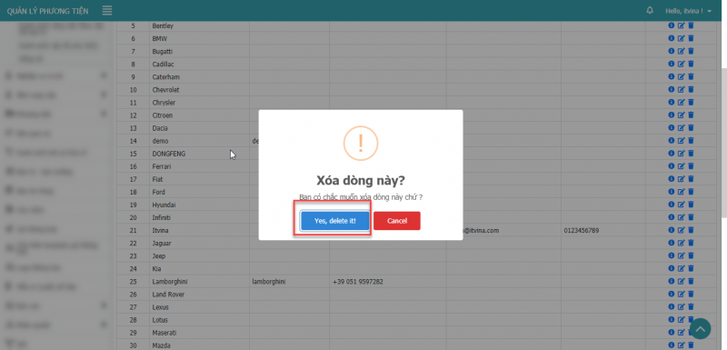 - Bước 2: Nhấn “Yes, delete it!” để xóa dòng.