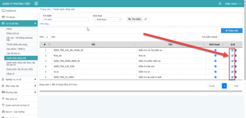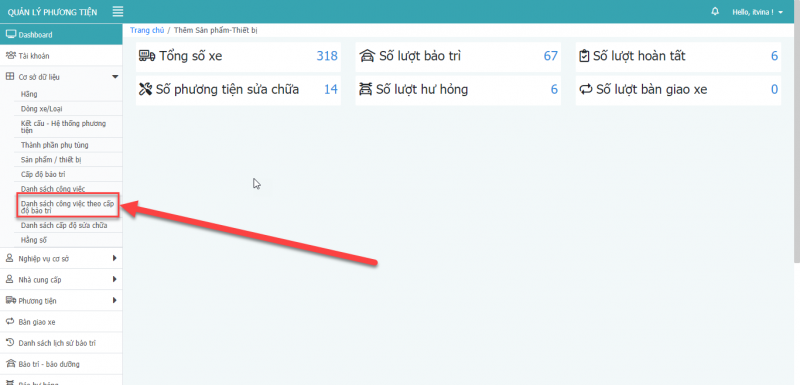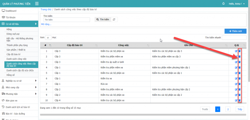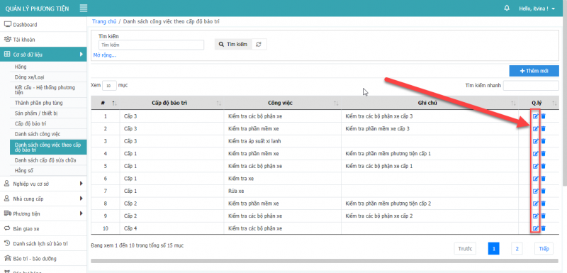 - Bước 1: Tại màn hình công việc theo cấp độ bảo trì, chọn icon
