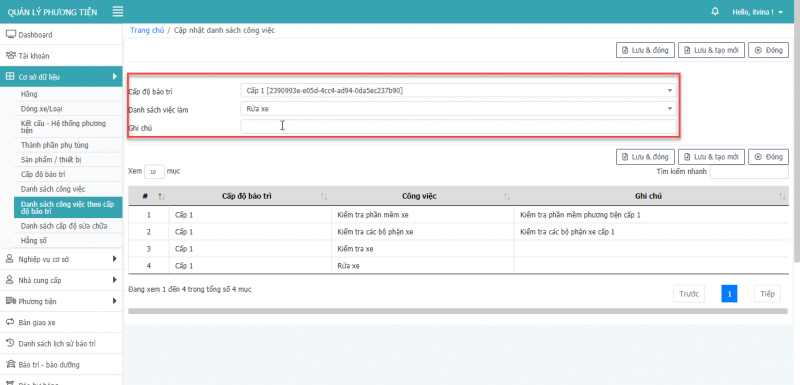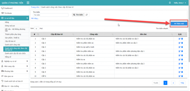 11.1 Thêm mới công việc theo cấp độ bảo trì