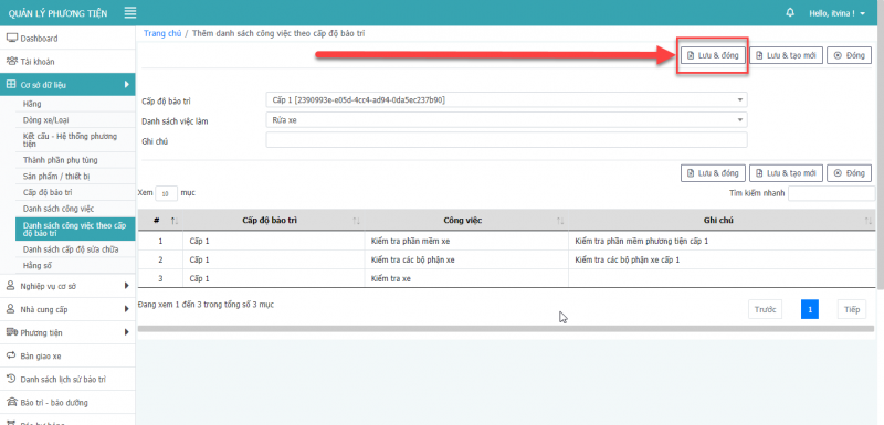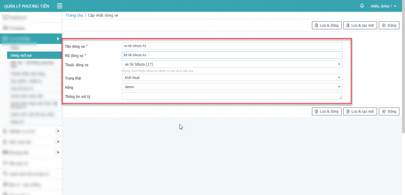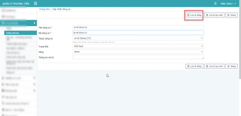 - Bước 3: Nhấn Lưu và đóng để cập nhật dòng xe.