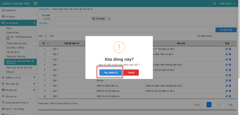 11.3 Xóa công việc theo cấp độ bảo trì