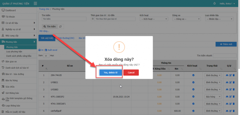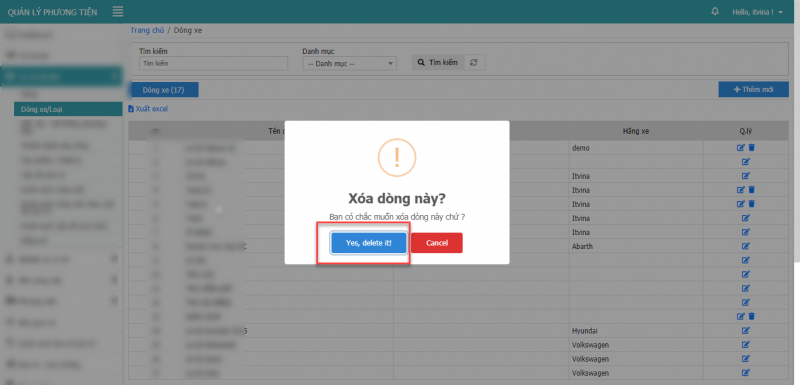 2.3 Xóa dòng xe