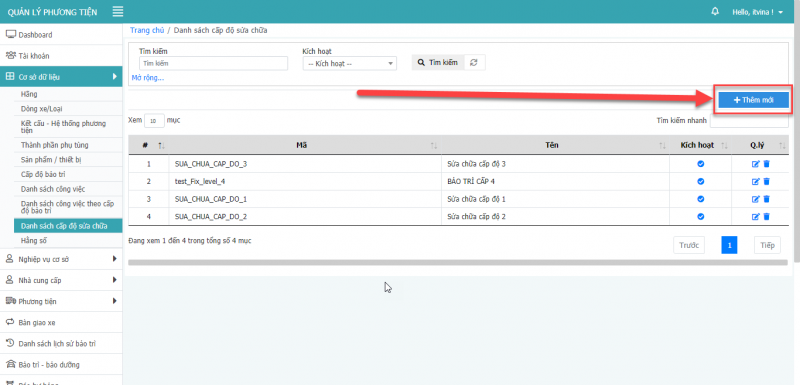 12.1 Thêm mới cấp độ sửa chữa