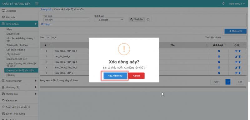 5.3 Xóa sản phẩm – thiết bị