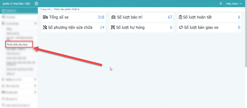 - Bước 1: Tại màn hình thành phần tùng, chọn icon