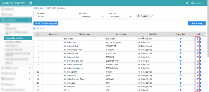 4.1 Thêm mới thành phần phụ tùng