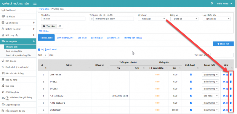 - Bước 1: Ở màn hình danh sách phương tiện, chọn icon