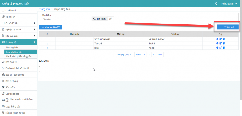 8.1 Thêm mới loại phương tiện