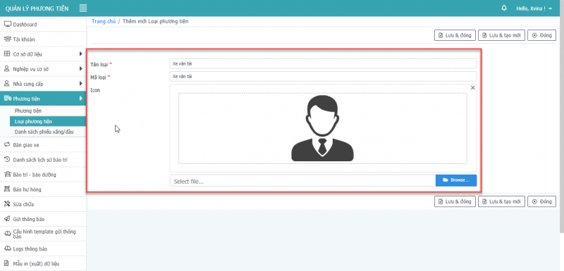 - Bước 5: Nhấn Lưu & Đóng để thêm mới loại phương tiện