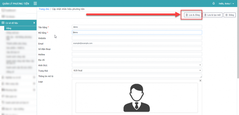 - Bước 5: Nhấn lưu và đóng để thêm mới hãng xe.