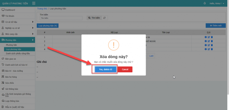 8.3 Xóa loại phương tiện