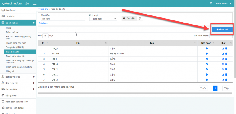 9.1 Thêm mới cấp độ bảo trì