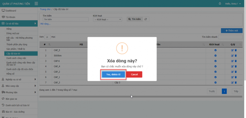 9.3 Xóa cấp độ bảo trì