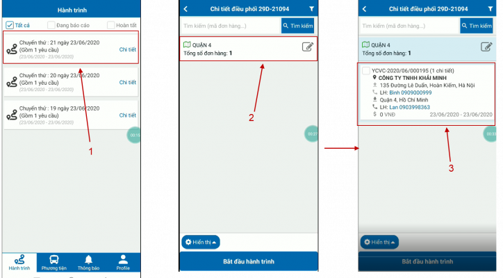 Tài xế mớ app vào hành trình sẽ thấy tin được điều phối từ công ty -> nhấn vào tin để xem chi tiết đơn hàng