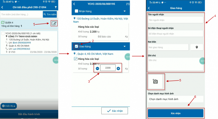 5. Đến nơi giao hàng và xác nhận nhận giao