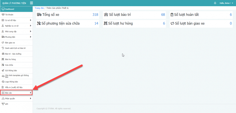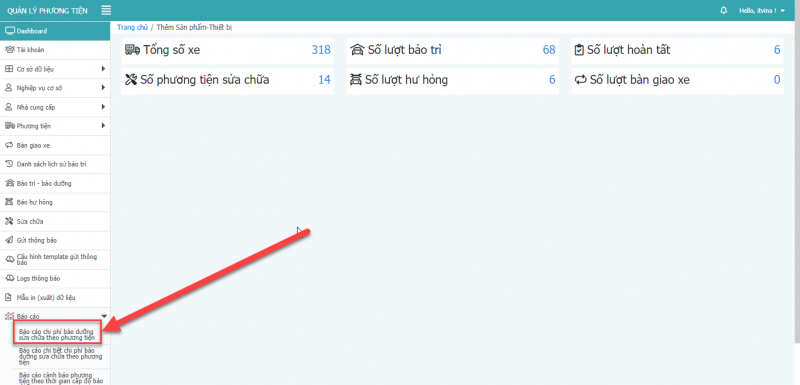 - Bước 2: Nhấn vào “Báo cáo chi phí bảo dưỡng