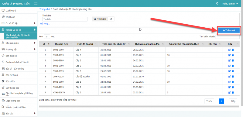 1.1 Thêm mới cấp độ bảo trì phương tiện: