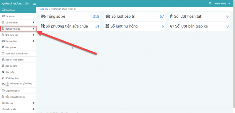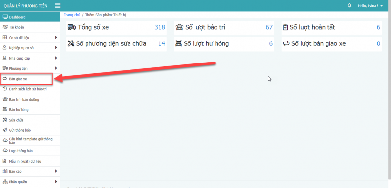 - Bước 1: Tại màn hình trang chủ, chọn bàn giao xe.