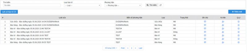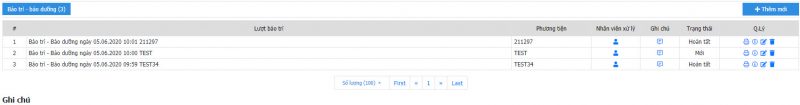 Màn hình “Danh sách lịch sử bảo trì”: Gồm các log phiếu đã tạo(Bảo trì, sửa chữa)