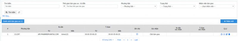 Điền thông tin phiếu-> thêm các dụng cụ kèm theo khi giao xe “Thêm mới dụng cụ kèm theo xe” -> Nhấn “Lưu”